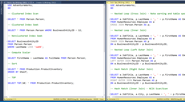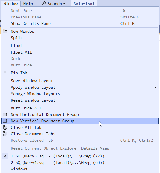 In a previous post, I showed how you might use split windows to allow you to work on different parts of a single query at the same time.