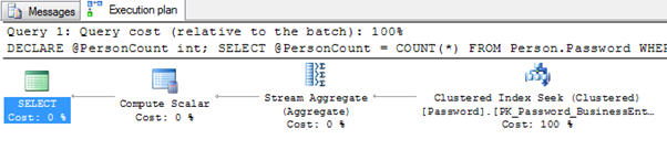 No big surprises here. The plan used entails counting the number of rows. Note that the object that SQL Server has chosen to count isn’t the table, but an index on the table: