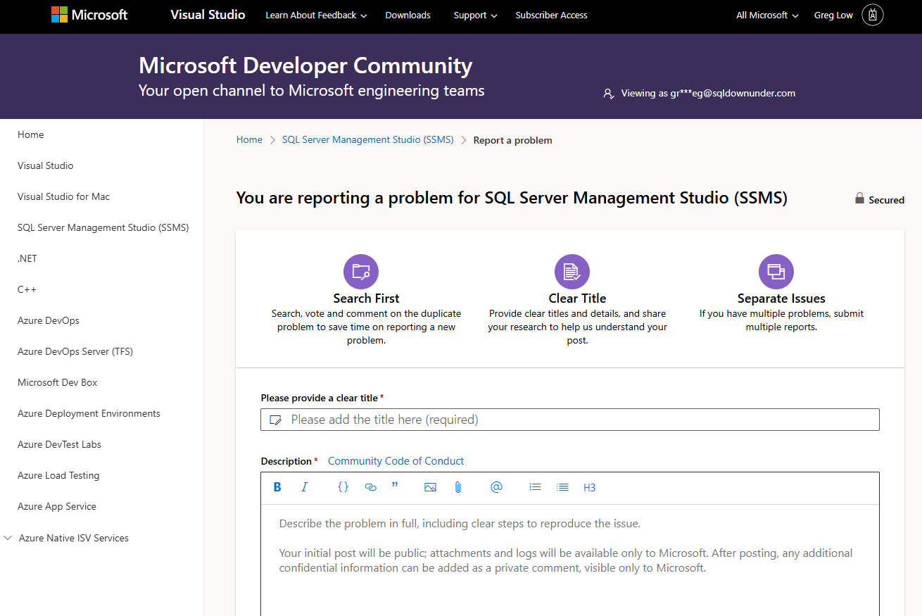 SSMS Tips and Tricks 7-11: Providing feedback directly to the SSMS team