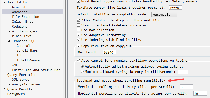 SSMS Tips and Tricks 3-18: Scrolling sensitivity