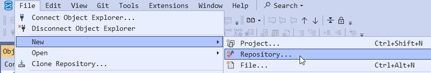 Since then, the world has moved to Git. And, overall, that’s a good thing. SSMS now supports the Git integration that comes with the underlying Visual Studio implementation. To me, the options look pretty much identical to the VS options. There is a top-level Git menu: